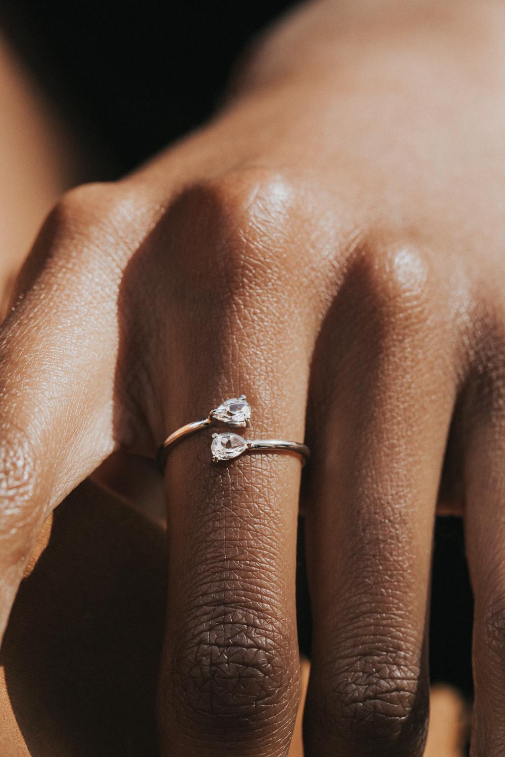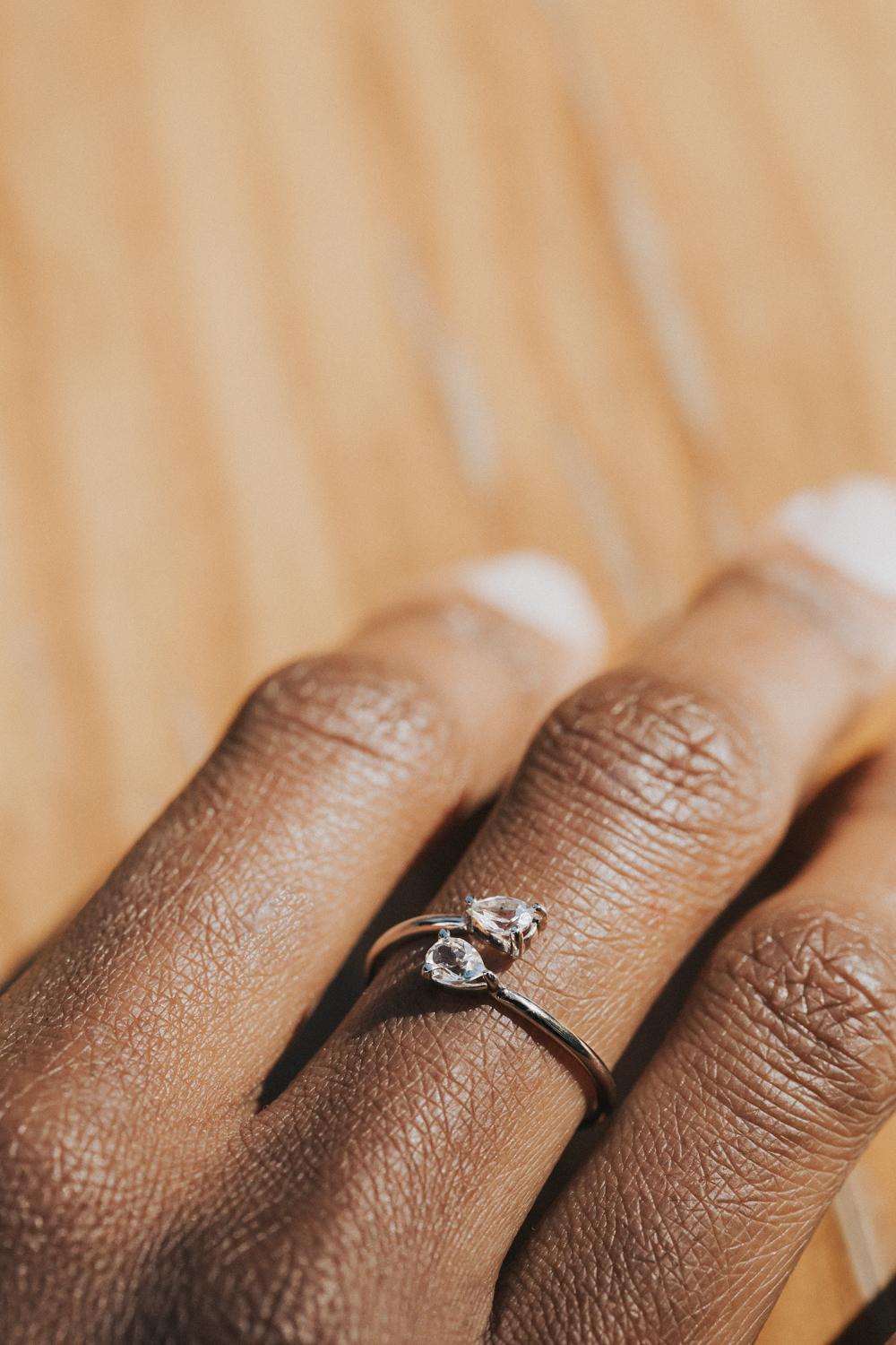 Detalles de la joya: Anillo abierto en oro blanco 18kt, con diamantes corte lágrima o pera.