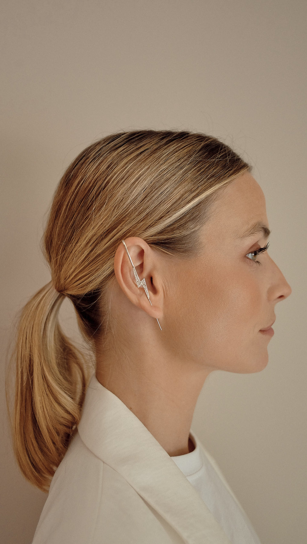 Te presentamos la nueva versión del pendiente MIAMI, esta vez con topacios engastados que le dan un punto más de luz. Está hecho en plata de ley y tiene un diseño muy especial, ya que va de lado a lado de la oreja. Gracias a la largura de la parte de abajo, se acopla perfectamente a cada oreja.